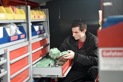 Unsere Servicefahrzeuge sind umfangreich mit Werkzeug und Ersatzteilen bestückt. So können unsere Mitarbeiter die notwendigen Montageeinsätze schnell und unterbrechungsfrei durchführen.
