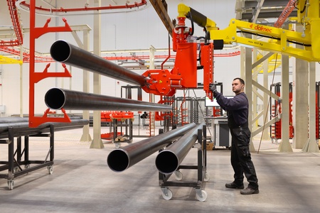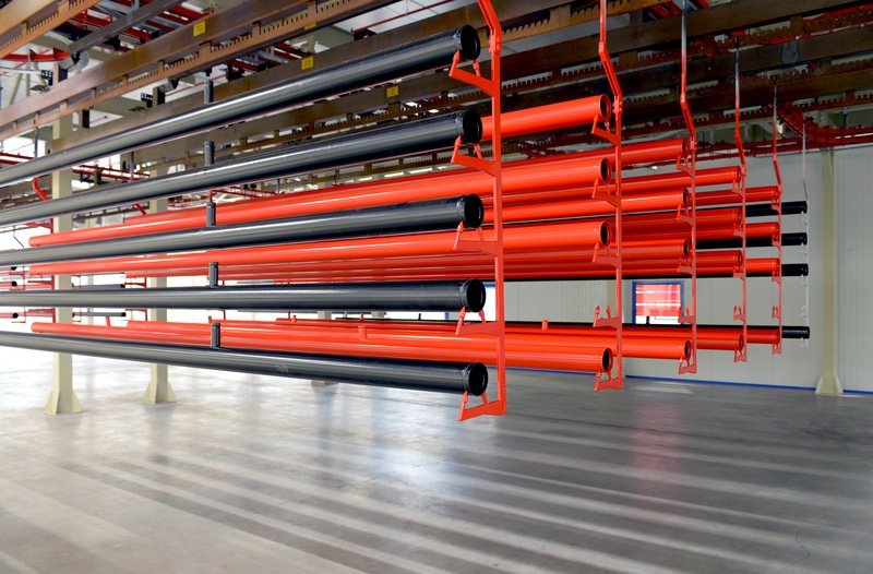 In einem hoch integrierten und automatisierten Prozess entstehen bei MV Pipe Technologies aus einfachen Stahlrohren maßgeschneiderte Verteiler- und Strangrohre – entsprechend der individuellen Anlagenplanung sowie mit der gewünschten Farbe. Mit den vorgefertigten Rohren können auf der Baustelle schnell und effizient komplette Rohrnetze für Wasser-Löschanlagen installiert werden.