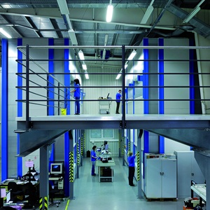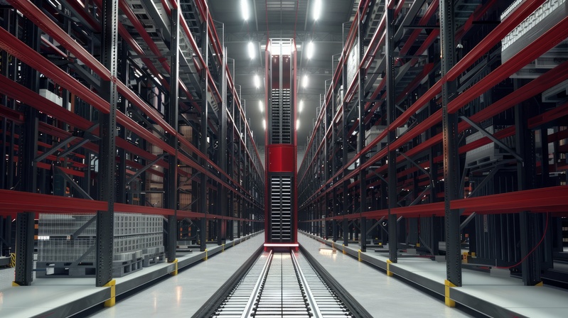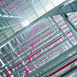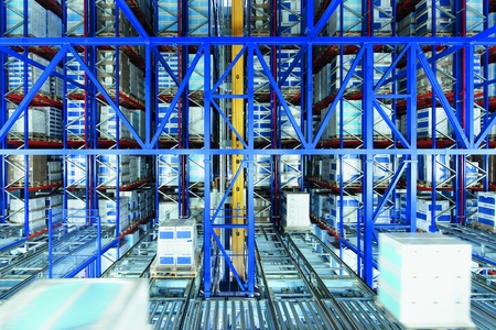 High-bay warehouses are up to 50 m high and are usually designed to hold Euro pallets. Their capacity ranges from a few thousand pallet spaces to several hundred thousand. They therefore offer space for extremely large quantities of goods on a very small footprint. Storage and retrieval machines move in an aisle between two rows of racking.