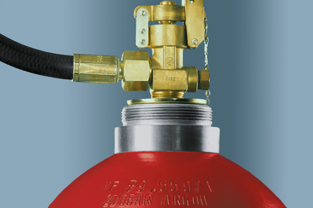 The extinguishing effect of carbon dioxide is caused by the fast displacement of oxygen in the vicinity of the fire source and a high heat-retention capacity. Due to special extinguishing agent properties, carbon dioxide extinguishing systems are not only able to protect entire rooms, but also open facilities. Carbon dioxide is a natural component of ambient air and electrically non-conductive. Carbon dioxide extinguishing systems require little space for storing the extinguishing agent.